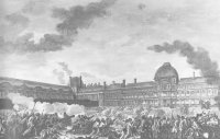 Le 10 août 1792, des groupes en armes s’emparent de la résidence royale des Tuileries. Les gardes personnels du roi sont tués et Louis XVI se réfugie parmi les députés.